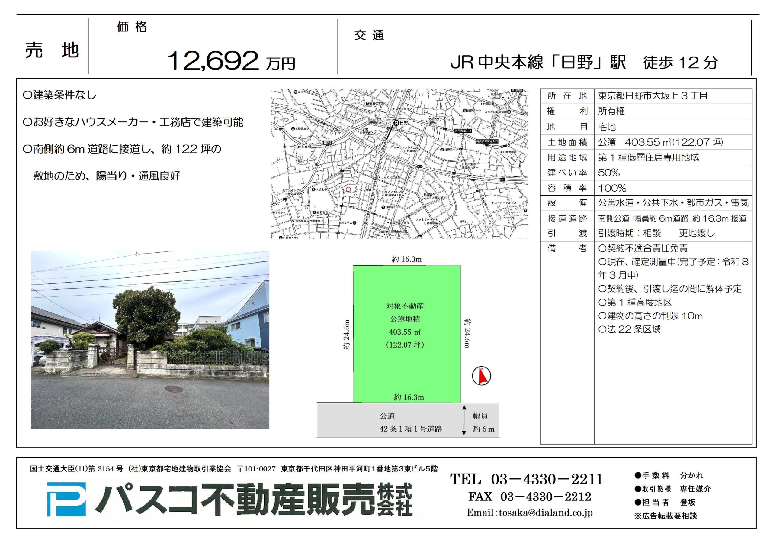 東京都日野市大坂上3丁目 土地